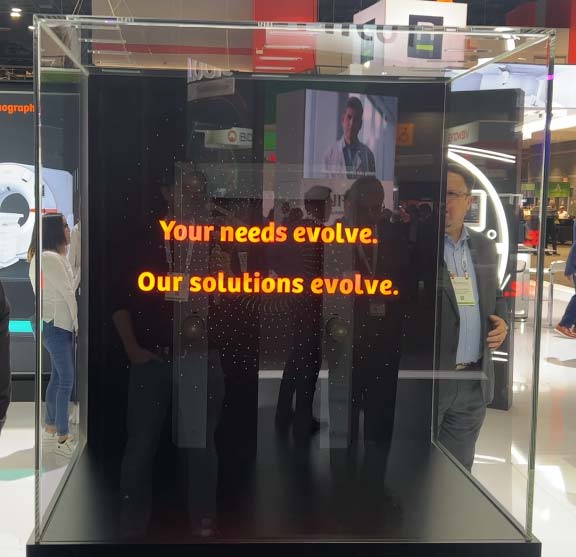 Das produzierte Hologrammvideo zeichnet sich durch dynamische Bewegungen aus. Diese versärken das Gefühl der räumlichen Tiefe und fesseln den Betrachter. Der Inhalt wechselt regelmäßig zwischen Botschaften, der Präsentation von SOMATOM go.-Systemen, 3D-Avataren und speziellen visuellen Effekten. Dadurch erhält der Zuschauer einen ersten Eindruck von der SOMATOM go. Bevor der Kunde am Stand ein Gespräch beginnt, kann er sich über die Plattform und ihre wichtigsten Eigenschaften informieren. Das Hologramm ist eine perfekte Kombination aus ungewöhnlicher, aufmerksamkeitsstarker Technologie, die Kunden an den Stand lockt, und einem Medium mit informativem und repräsentativem Wert. Ein großer Vorteil des Hologramm-Videos ist, dass es später für andere Videos modifiziert werden kann, z.B. um auf einer großen LED-Wand gezeigt zu werden. Eine großes Potenzial, die vorhandenen 3D-Modelle der Systeme nachhaltig zu nutzen, besteht außerdem darin, sie in der Zukunft für die Entwicklung von Anwendungen wie Augmented Reality oder Virtual Reality zu verwenden.