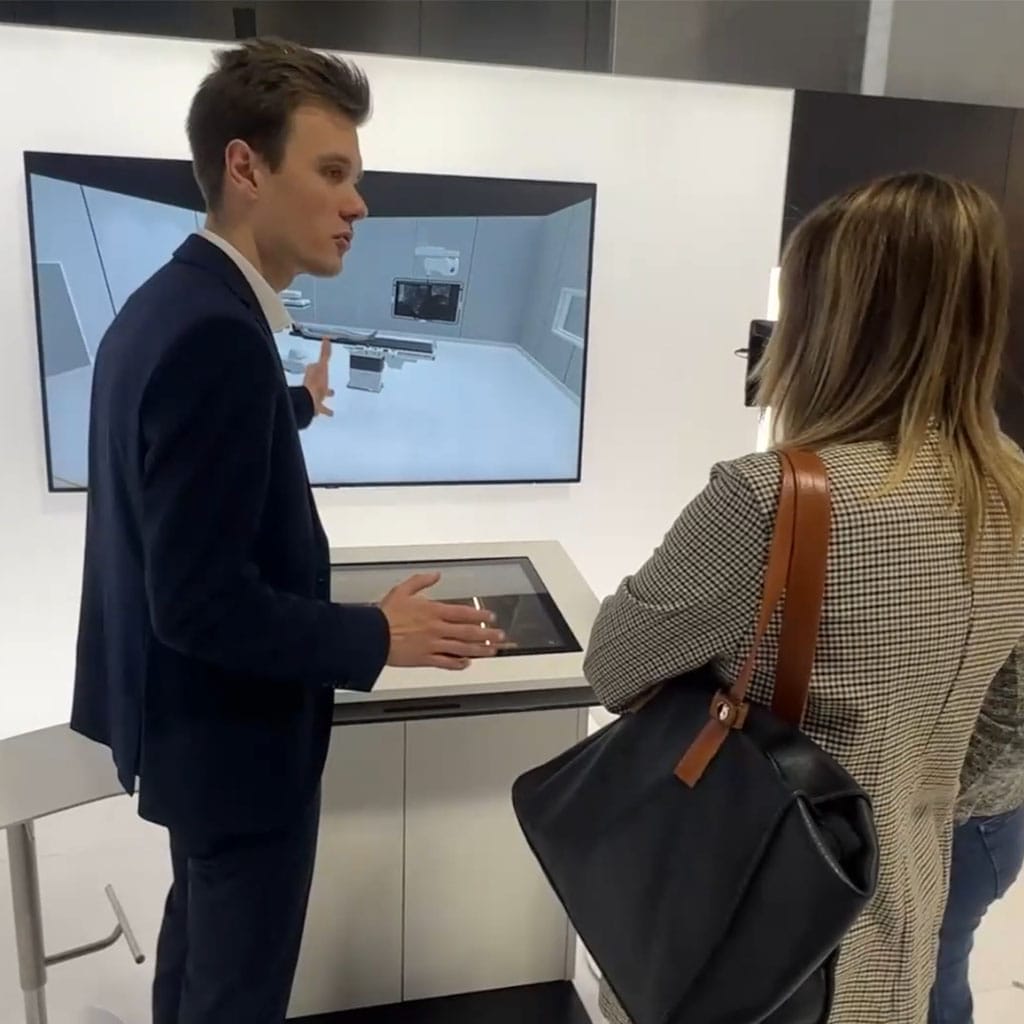 Mit der ARTIS icono Touchanwendung können die Geräte, mögliche Raum-Setups und medizinische Workflows erlebbar gemacht werden. Interessierte können bei allen Produkten Informationsmaterialien zu den verschiedenen Einsatzoptionen direkt abrufen.